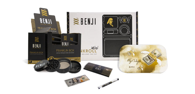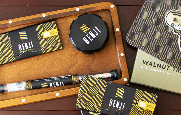 The Benji OG Rolling Paper and Tray with Magnetic Lid Bundle is the ultimate set for the cannabis enthusiast in your life. This set bundle incorporates a Benji’s rolling tray, a pack of Benji’s rolling papers, one pack of Benji’s cones, and a magnetic lid cover.