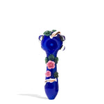 The Empire Glassworks Koi Pond Spoon Hand Pipe is a 4 inch pipe that displays a peaceful water garden with wandering koi fishes. Individually handcrafted from mixed colored borosilicate glass, this pipe features a vibrant blue base with floating lotus flowers and koi fishes. The Koi Pond Spoon is built with a large side for hearty packs and a left sided air carb for full airflow control. Additionally, with its 3 dimensional clear marbles and plastered floral prints, the pipe provides an ergonomic grip for security. Stroll along the Japanese Garden and feed kois your dry herbs.